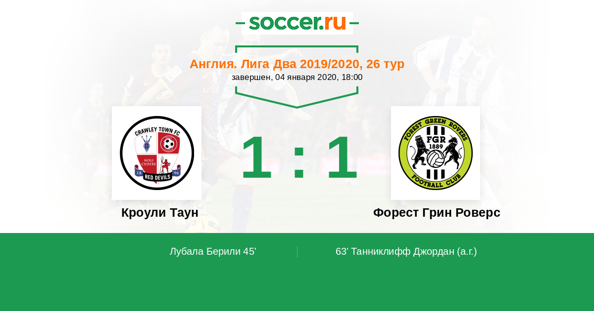 Протокол матча Кроули Таун против Форест Грин Роверс