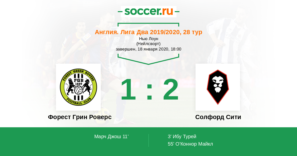 Протокол матча Форест Грин Роверс против Солфорд Сити