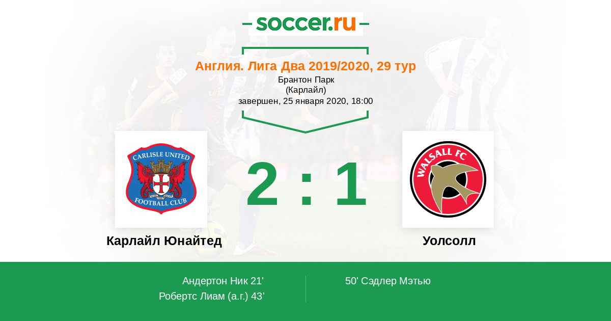 Протокол матча Карлайл Юнайтед против Уолсолл