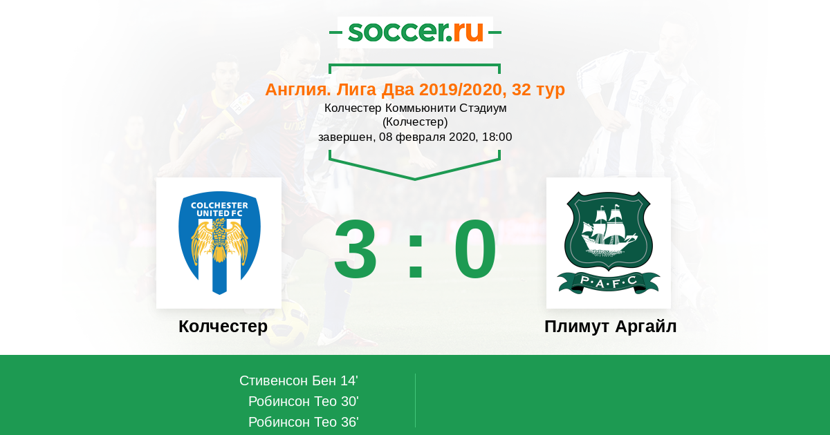 Протокол матча Колчестер против Плимут Аргайл