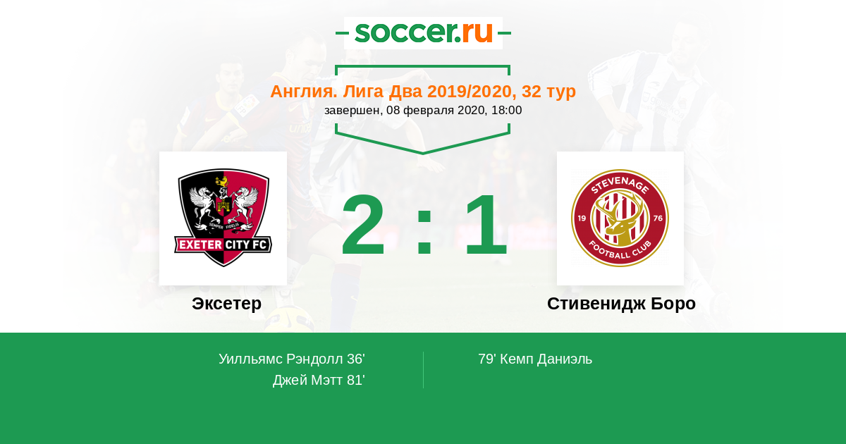 Протокол матча Эксетер против Стивенидж Боро