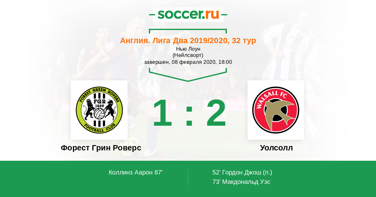 Протокол матча Форест Грин Роверс против Уолсолл