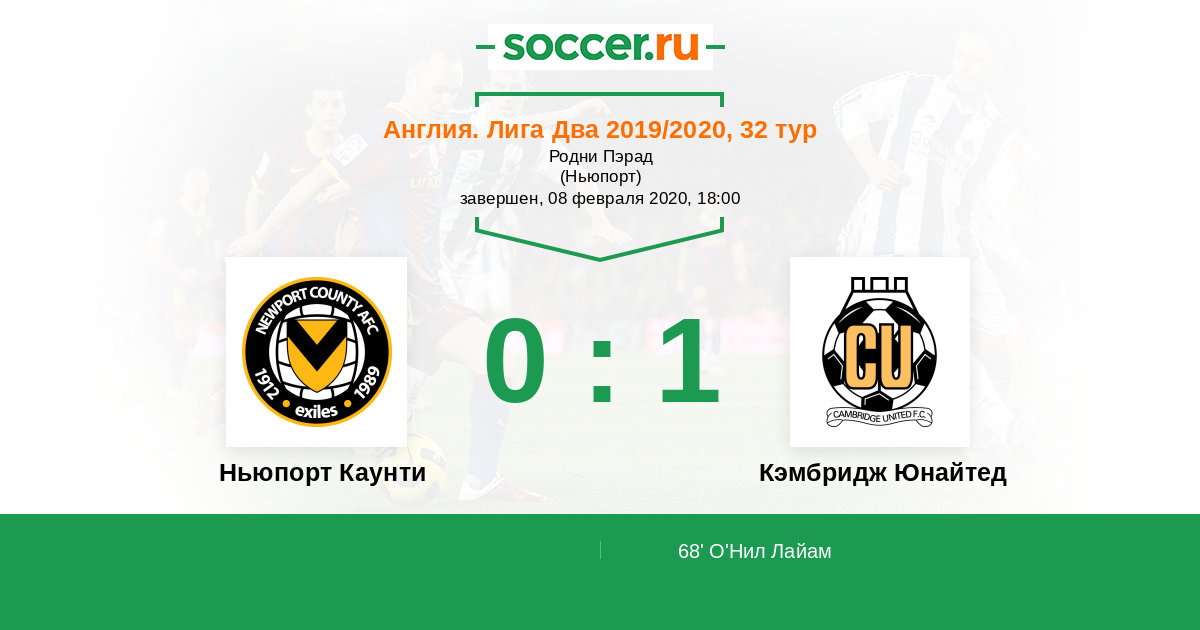 Протокол матча Ньюпорт Каунти против Кэмбридж Юнайтед