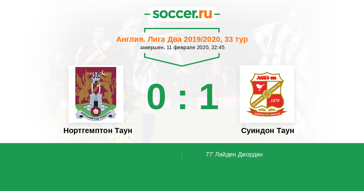Протокол матча Нортгемптон Таун против Суиндон Таун
