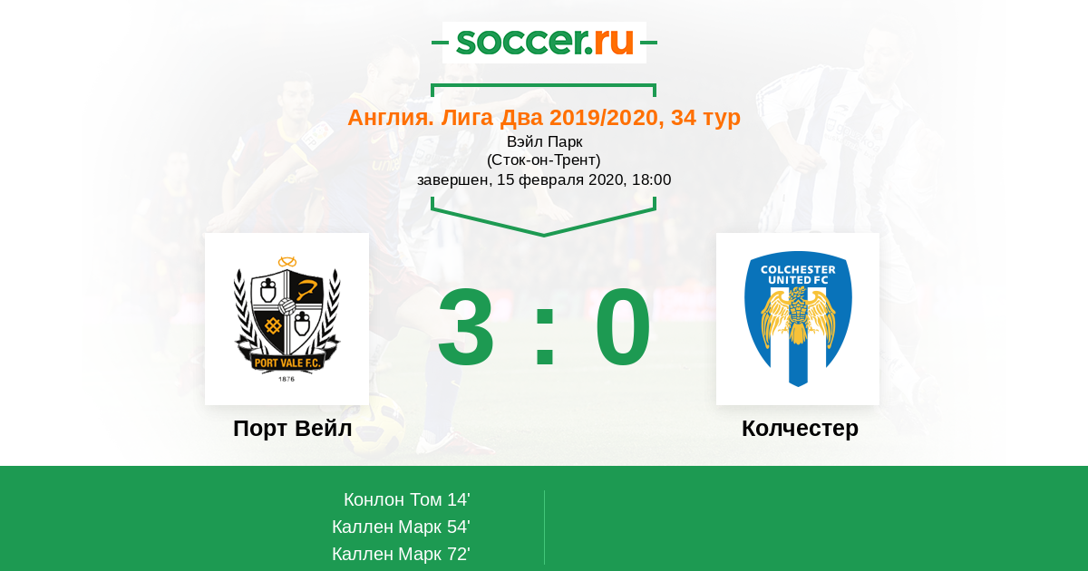 Протокол матча Порт Вейл против Колчестер