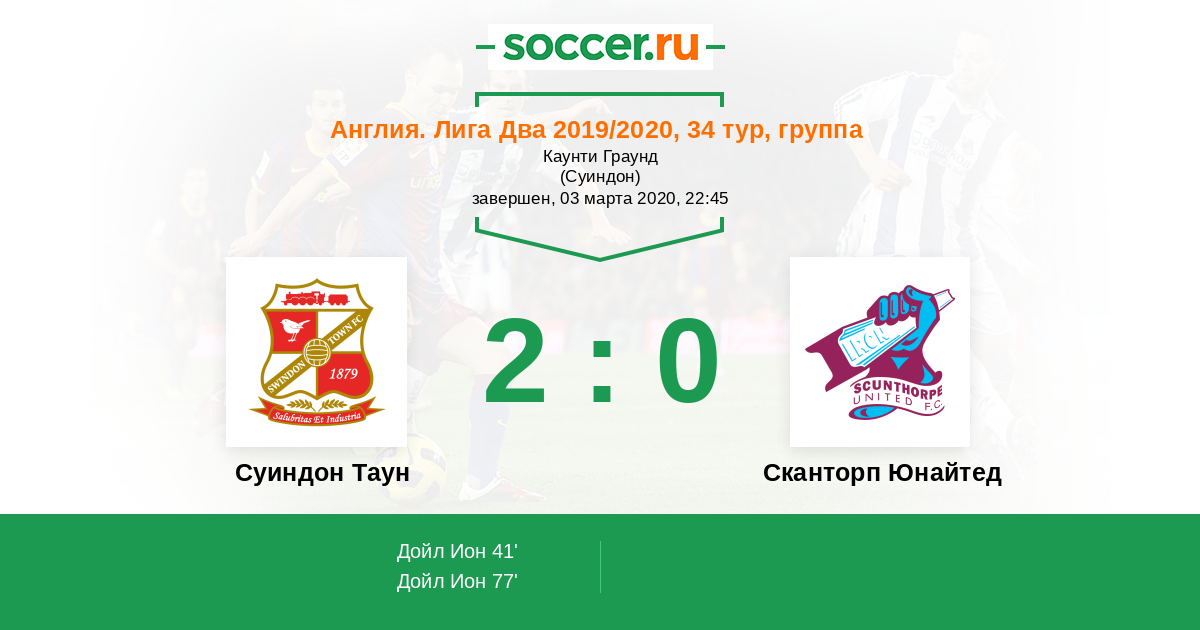Протокол матча Суиндон Таун против Сканторп Юнайтед