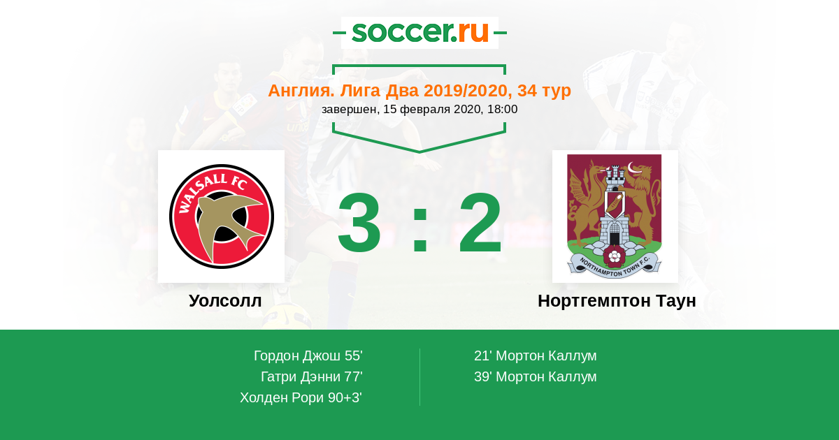 Протокол матча Уолсолл против Нортгемптон Таун