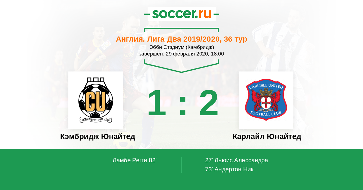 Протокол матча Кэмбридж Юнайтед против Карлайл Юнайтед