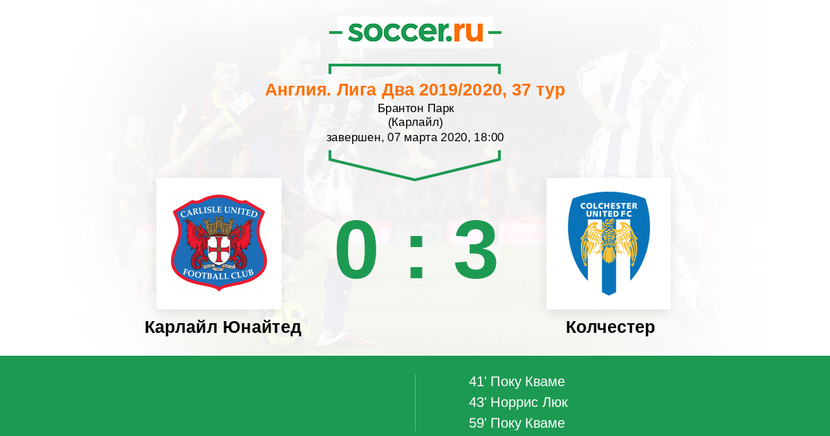 Протокол матча Карлайл Юнайтед против Колчестер