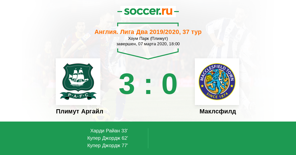 33' (1:0) Харди Райан (18) (Купер Джордж (32))