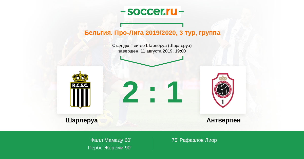 Протокол матча Шарлеруа против Антверпен