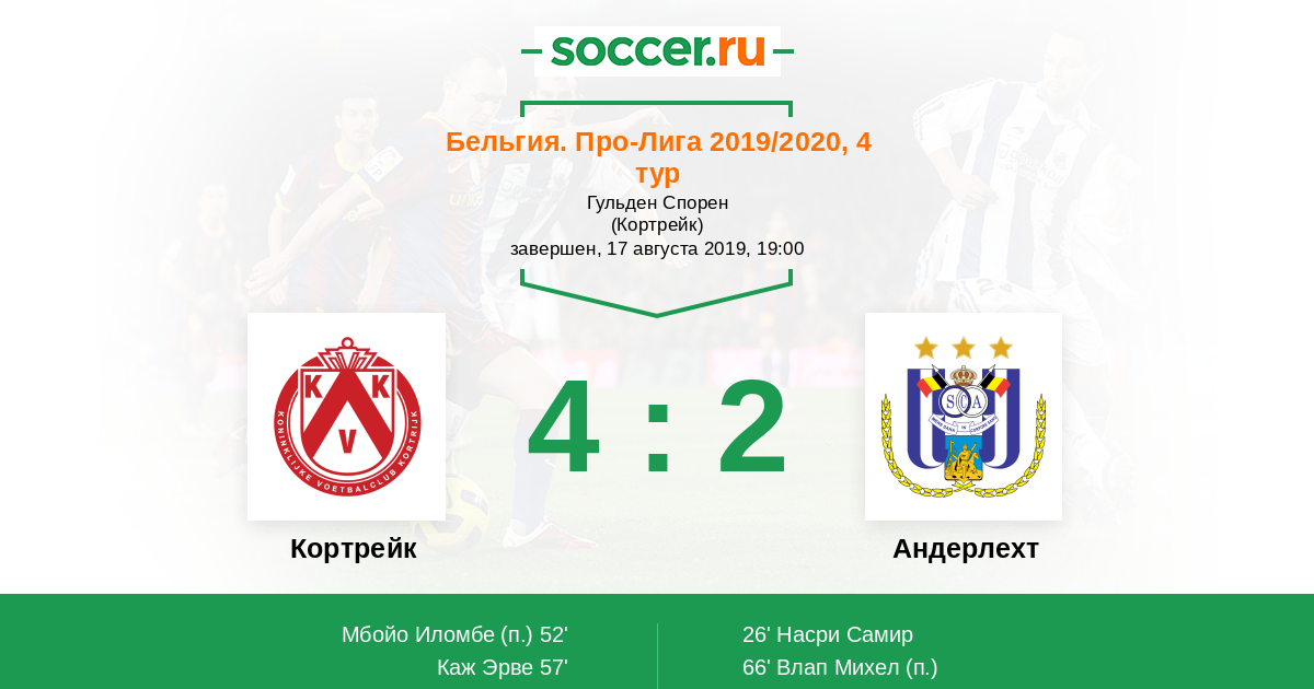 Протокол матча Кортрейк против Андерлехт