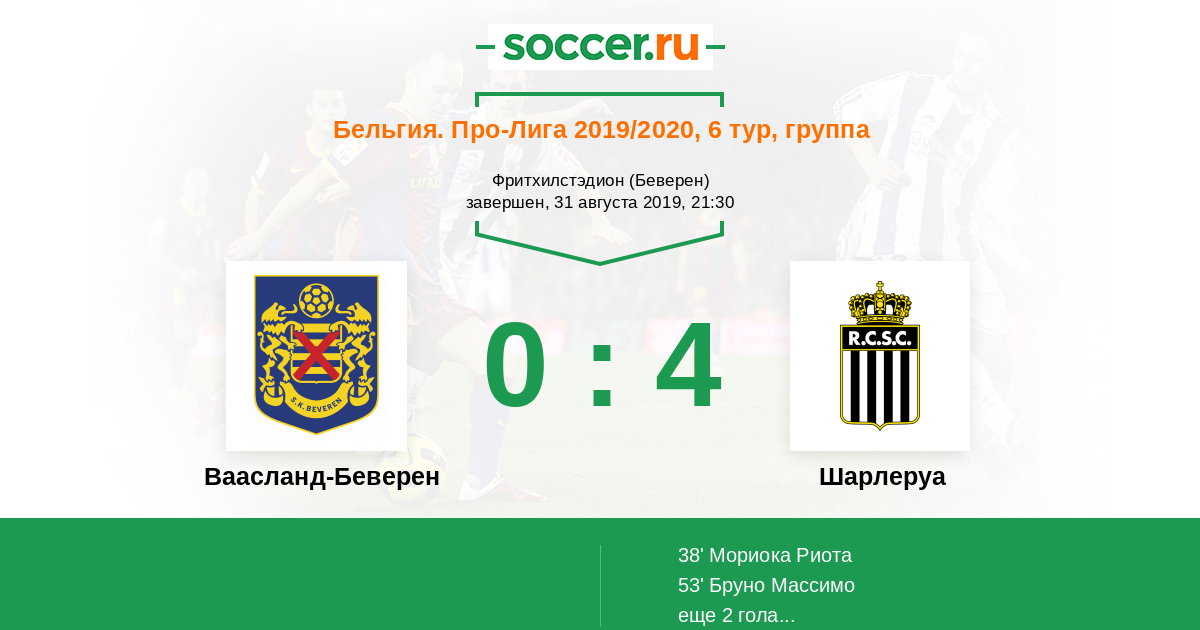 Протокол матча Ваасланд-Беверен против Шарлеруа