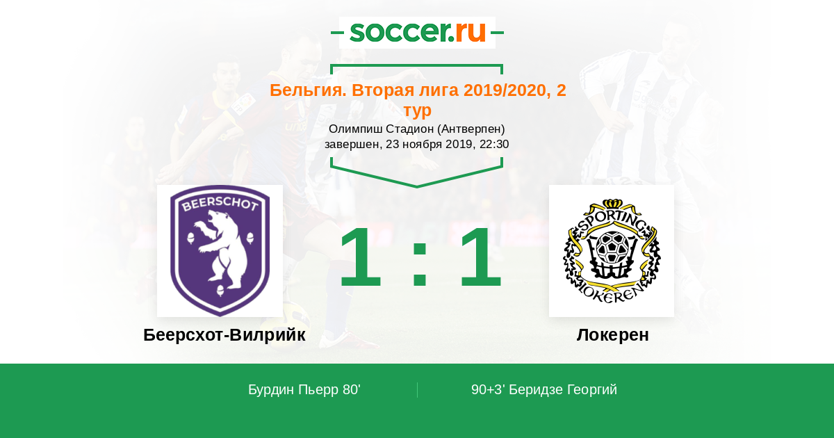 Протокол матча Беерсхот-Вилрийк против Локерен