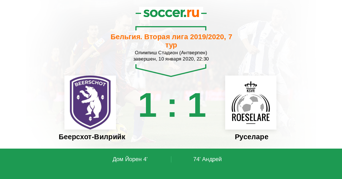 Протокол матча Беерсхот-Вилрийк против Руселаре