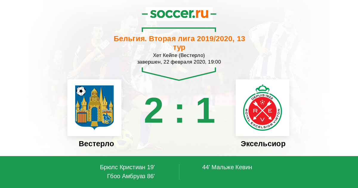 Протокол матча Вестерло против Эксельсиор