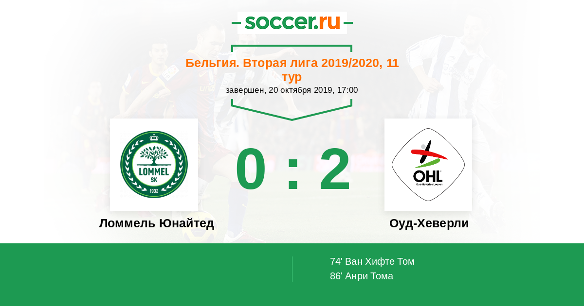 Протокол матча Ломмель Юнайтед против Оуд-Хеверли