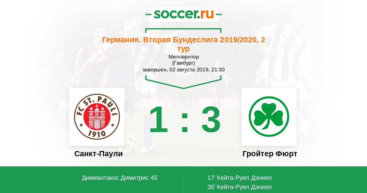 Протокол матча Санкт-Паули против Гройтер Фюрт
