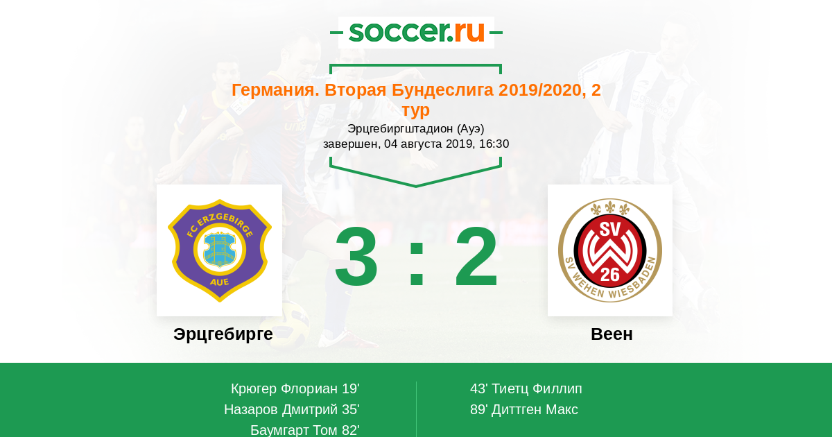 19' (1:0) Крюгер Флориан (11) (Теструт Паскаль (37))