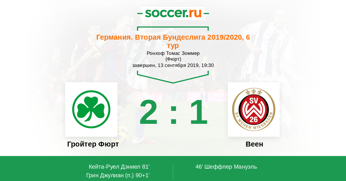 Протокол матча Гройтер Фюрт против Веен