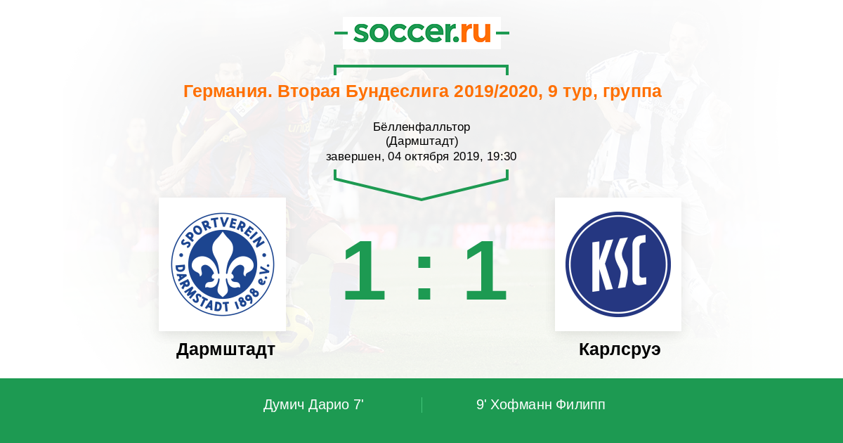 Протокол матча Дармштадт против Карлсруэ