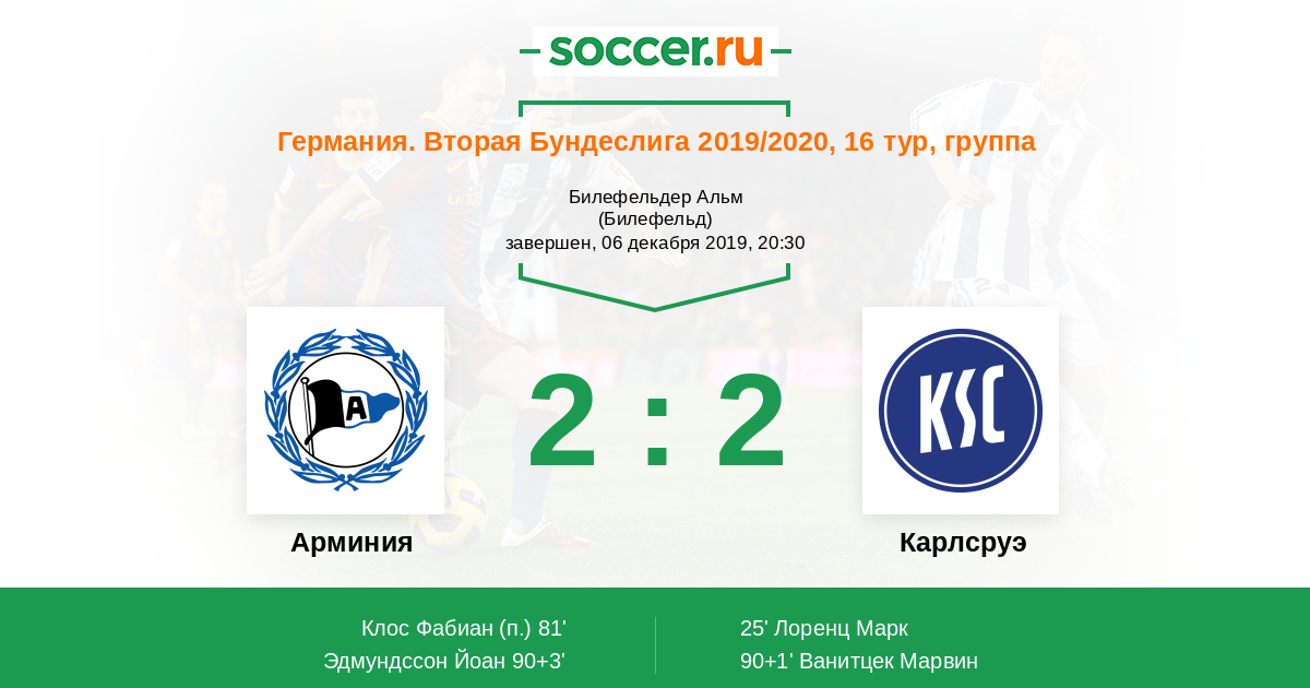 Протокол матча Арминия против Карлсруэ