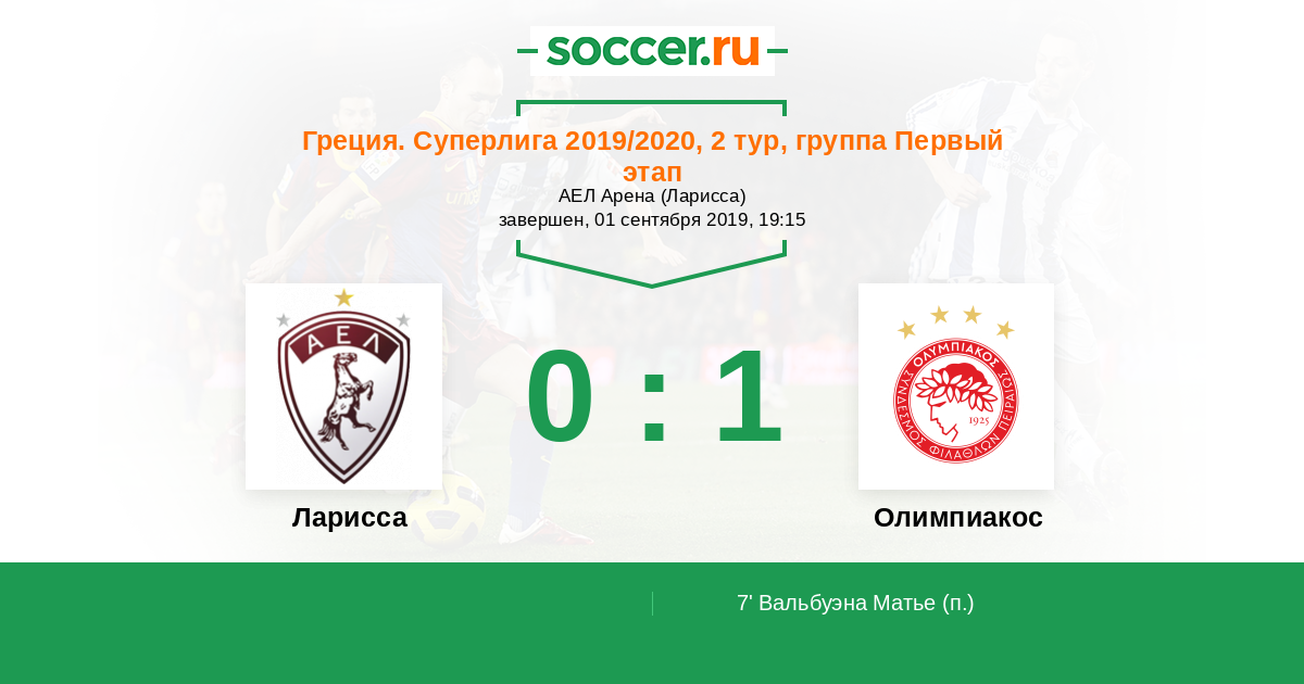 Протокол матча Ларисса против Олимпиакос
