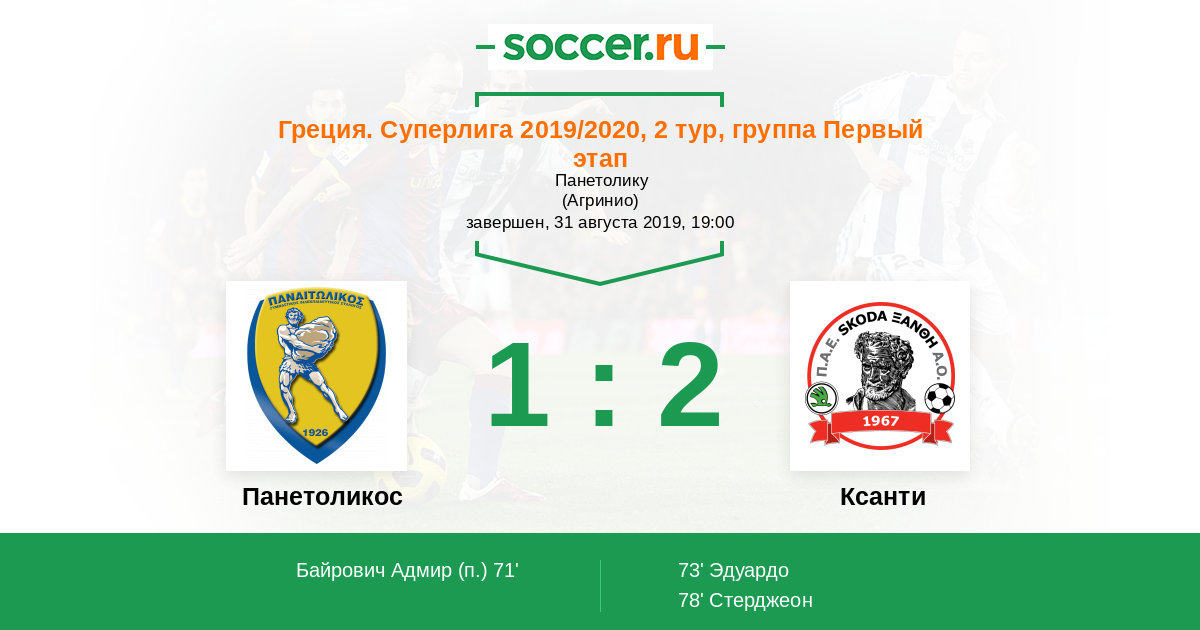 Протокол матча Панетоликос против Ксанти