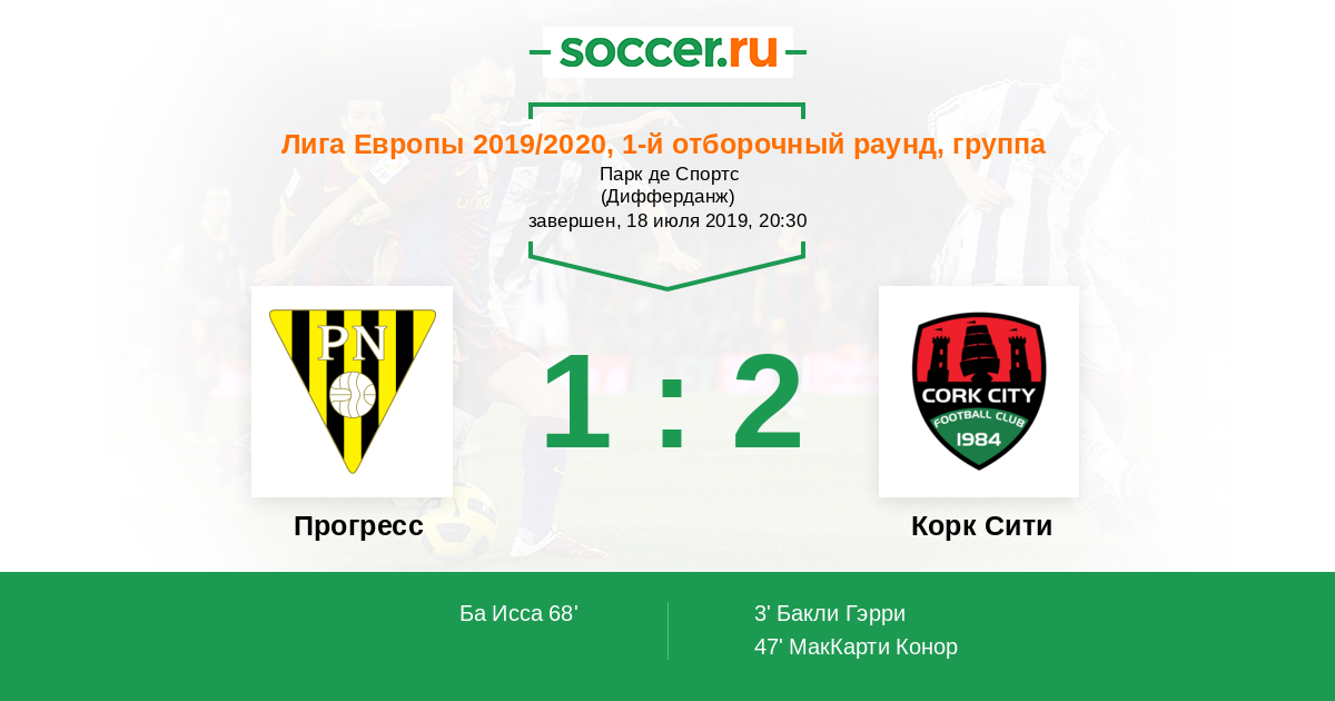 Протокол матча Прогресс против Корк Сити