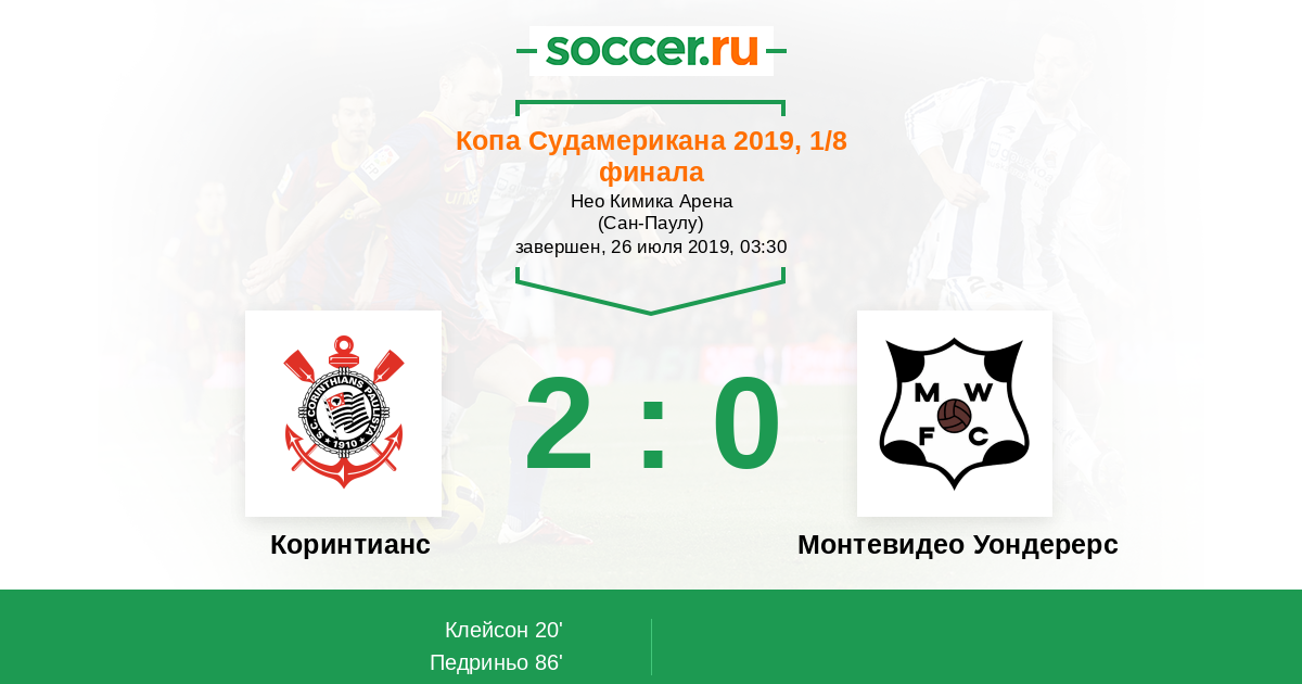 Протокол матча Коринтианс против Монтевидео Уондерерс