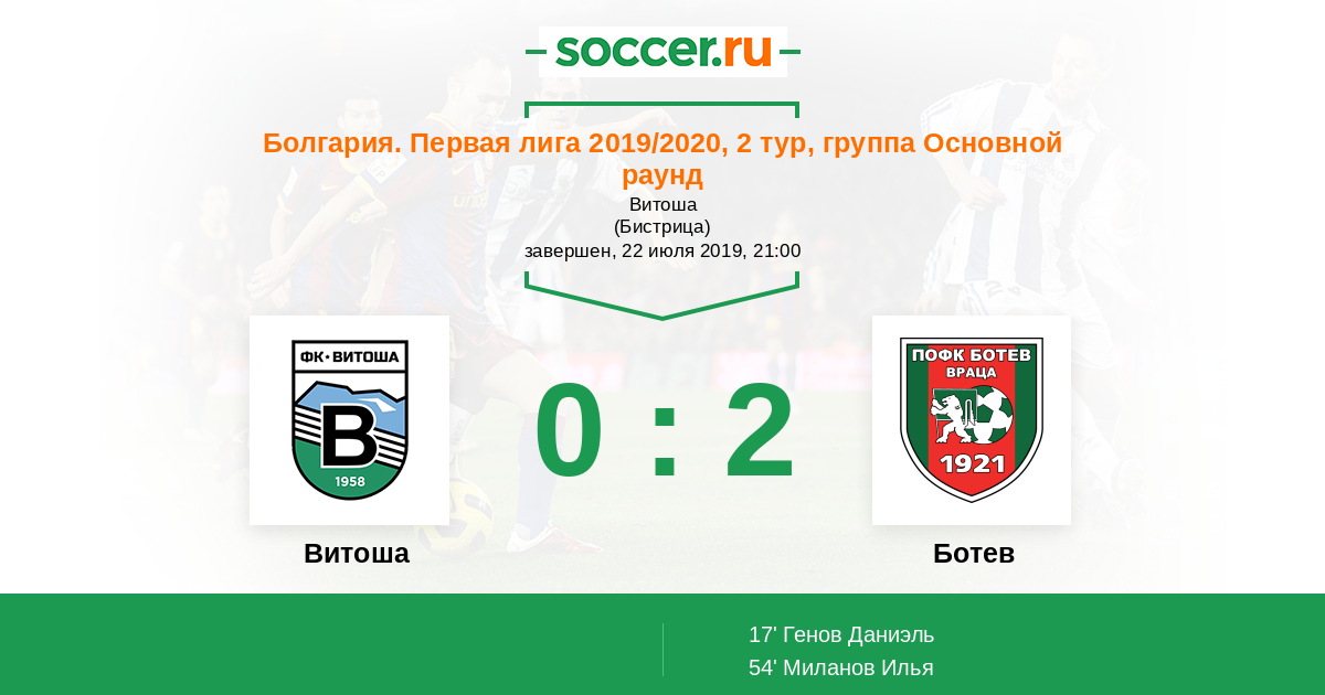 Протокол матча Витоша против Ботев