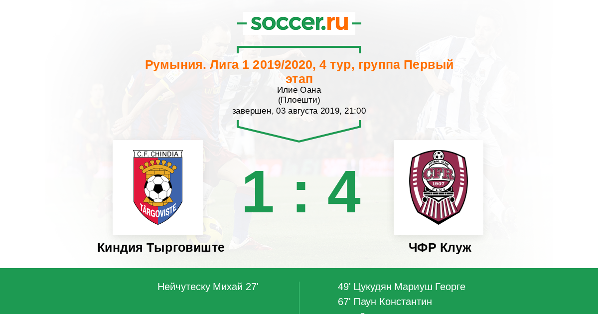 Протокол матча Киндия Тырговиште против ЧФР Клуж