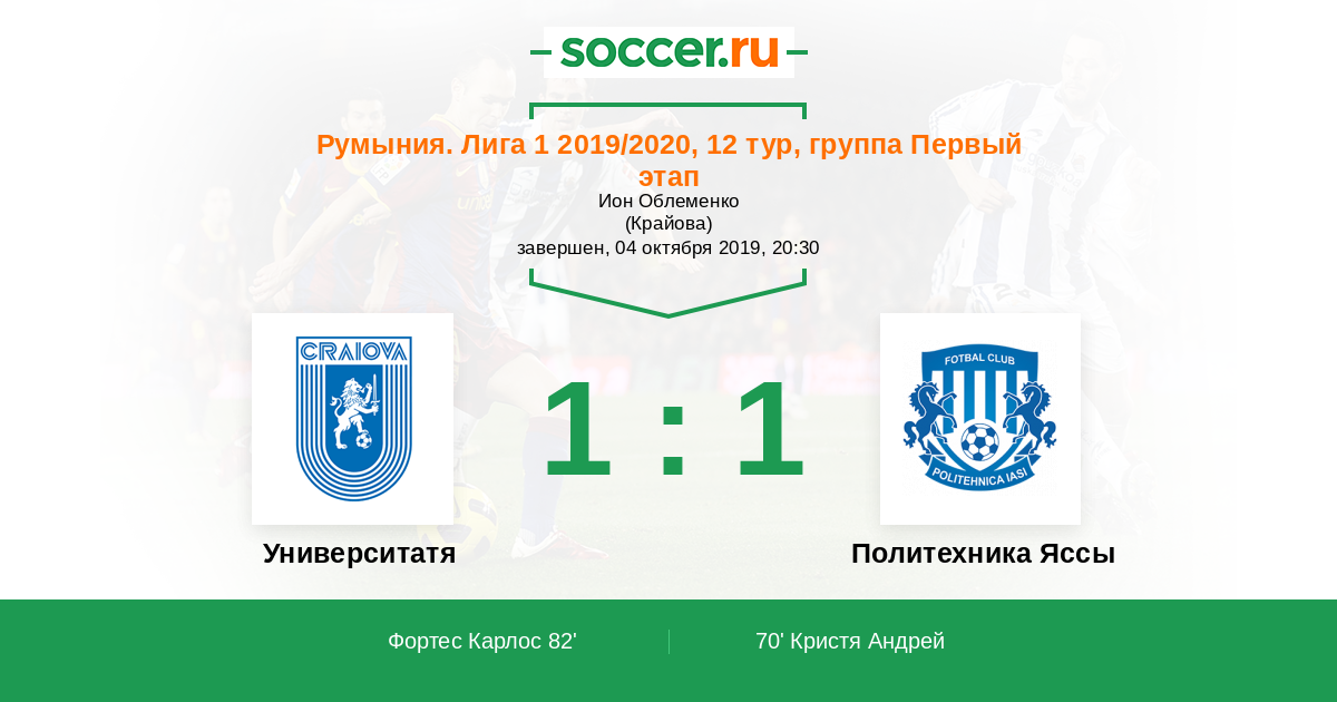 Гол82' (1:1) Фортес Карлос (99) (Михэйлэ Валентин (28))