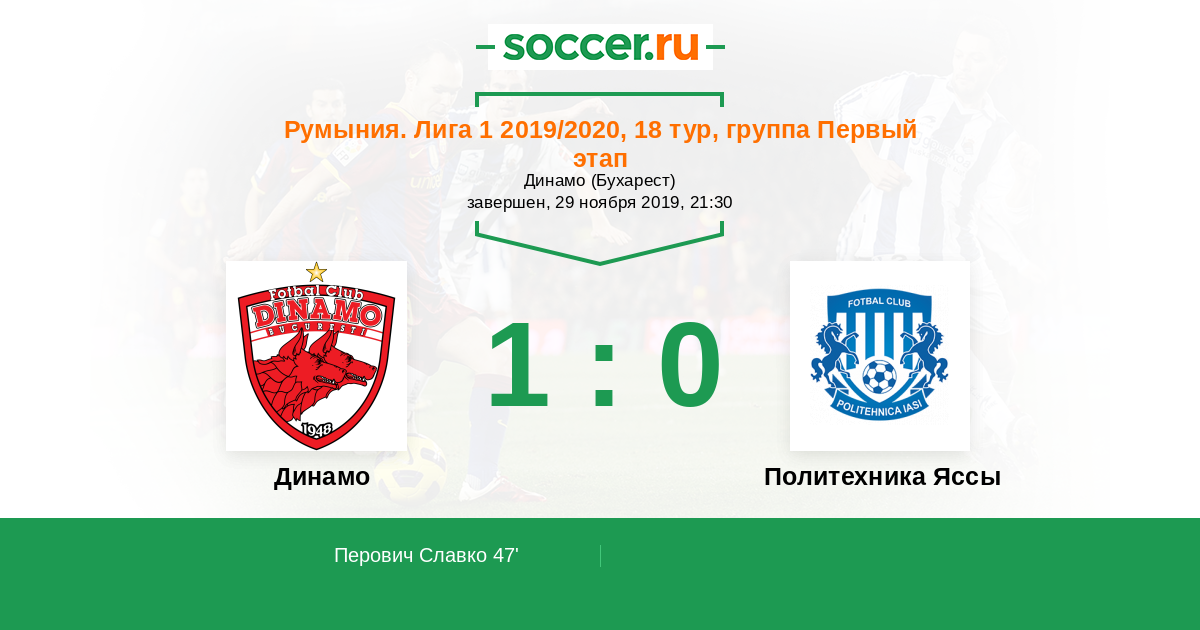 47' (1:0) Перович Славко (18) (Нистор Дан (10))