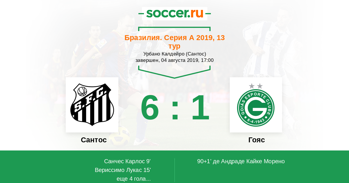 Протокол матча Сантос против Гояс