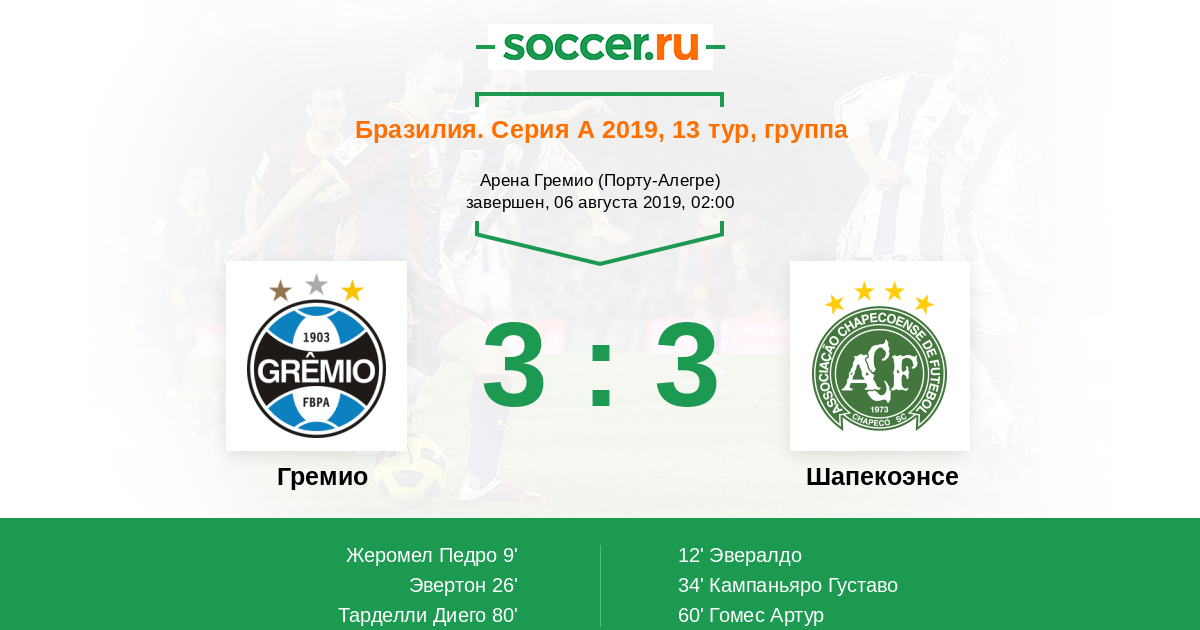 Протокол матча Гремио против Шапекоэнсе