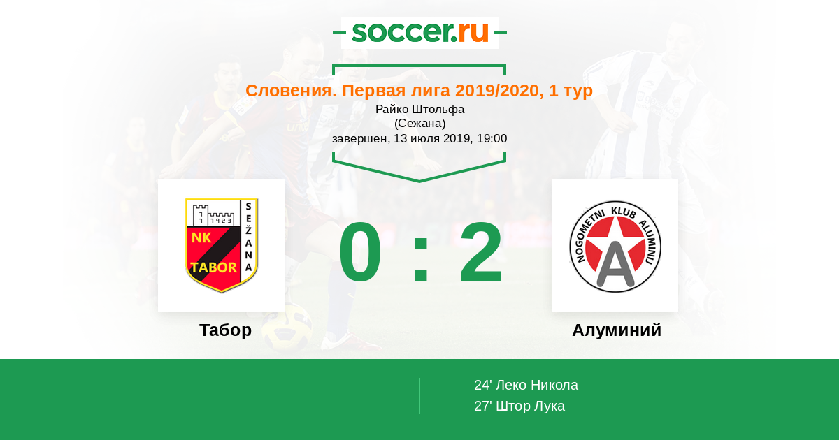 Протокол матча Табор против Алуминий