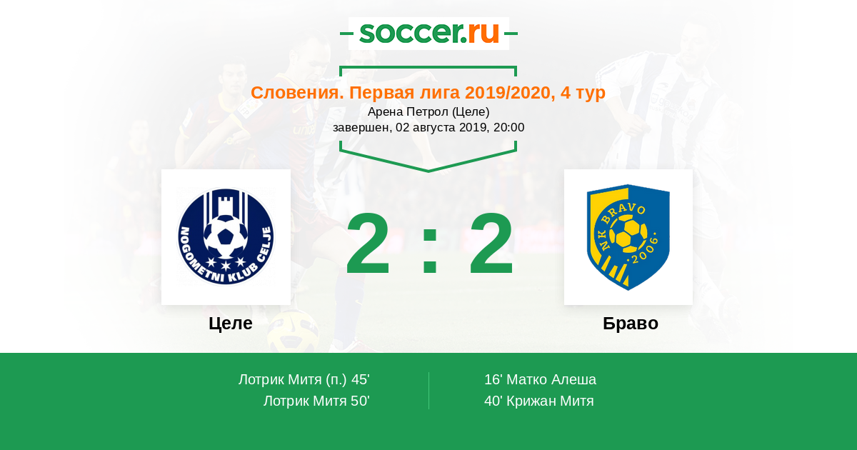 Протокол матча Целе против Браво