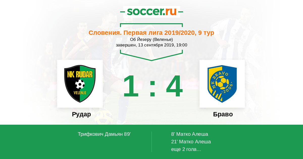 Протокол матча Рудар против Браво