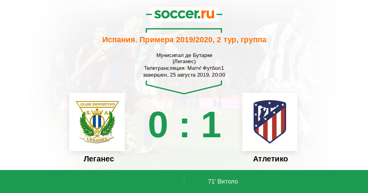 Протокол матча Леганес против Атлетико