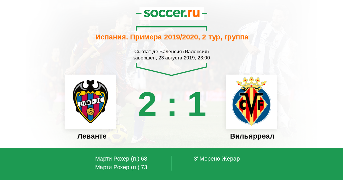 Протокол матча Леванте против Вильярреал