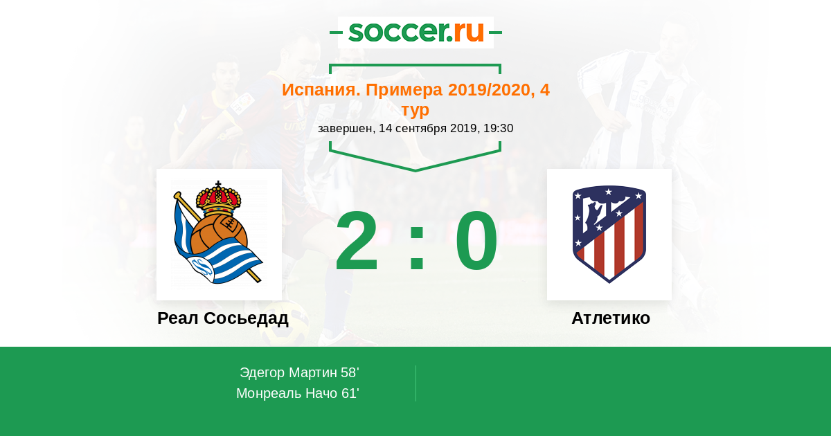 Протокол матча Реал Сосьедад против Атлетико