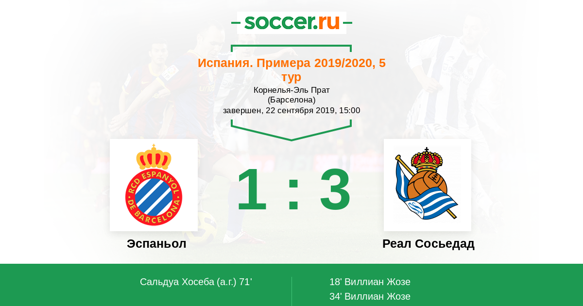 Протокол матча Эспаньол против Реал Сосьедад