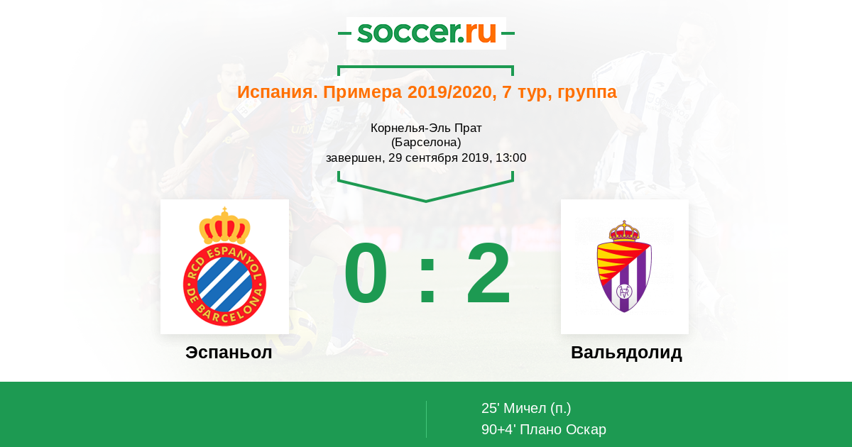 Протокол матча Эспаньол против Вальядолид