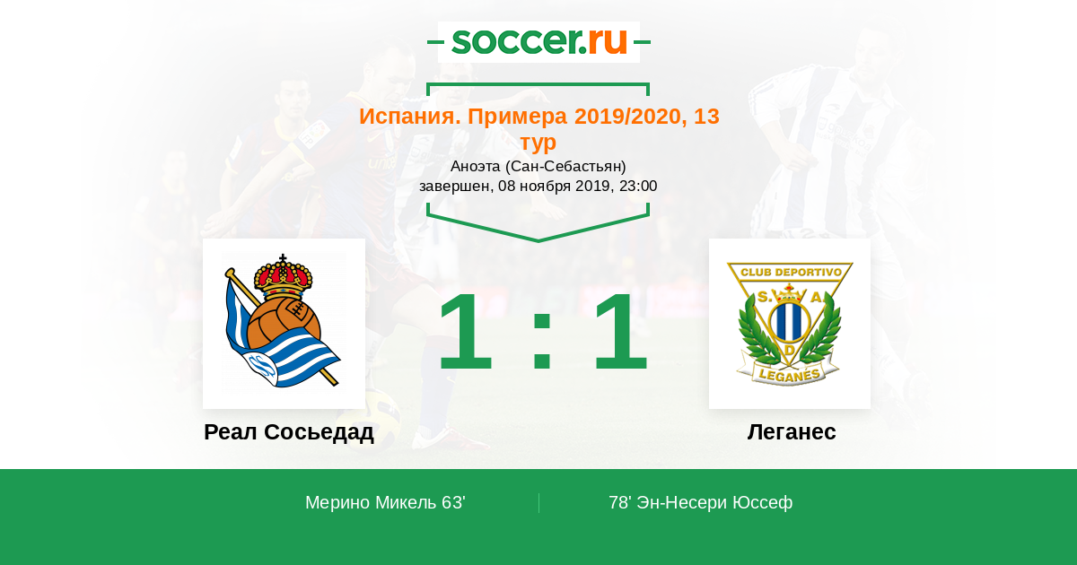 Протокол матча Реал Сосьедад против Леганес