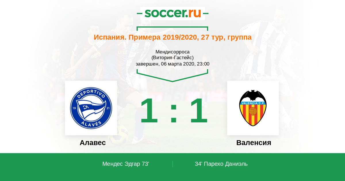 Протокол матча Алавес против Валенсия