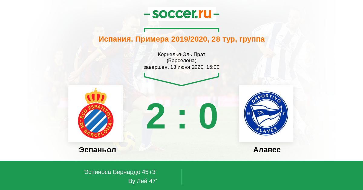 Протокол матча Эспаньол против Алавес