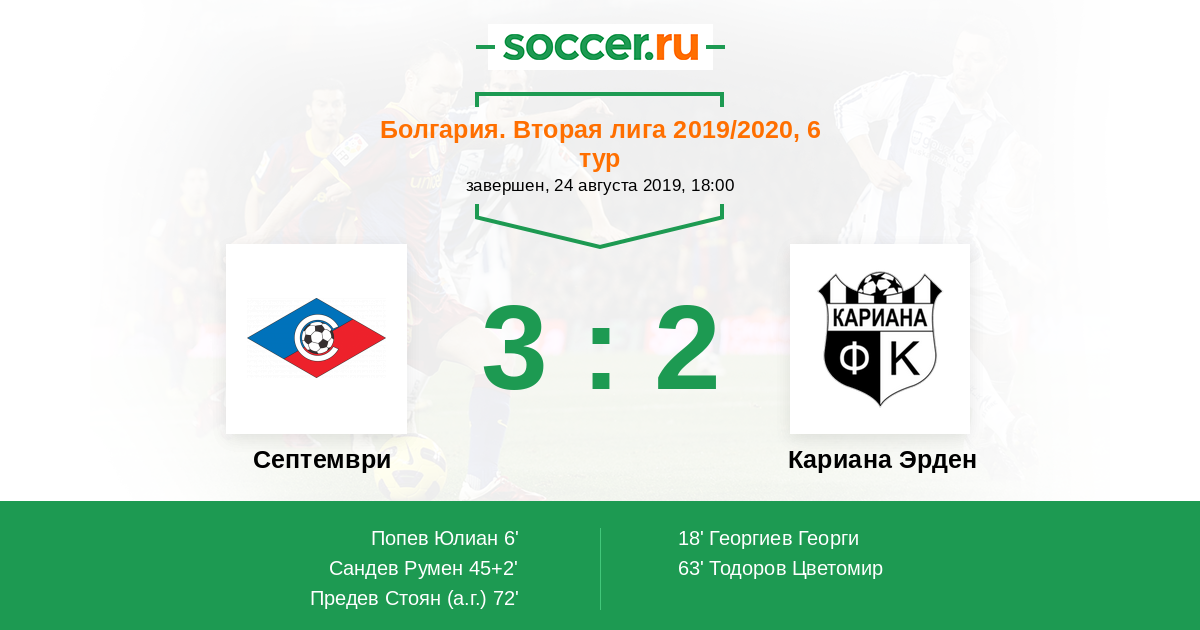 Протокол матча Септември против Кариана Эрден