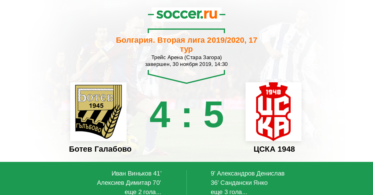 Протокол матча Ботев Галабово против ЦСКА 1948