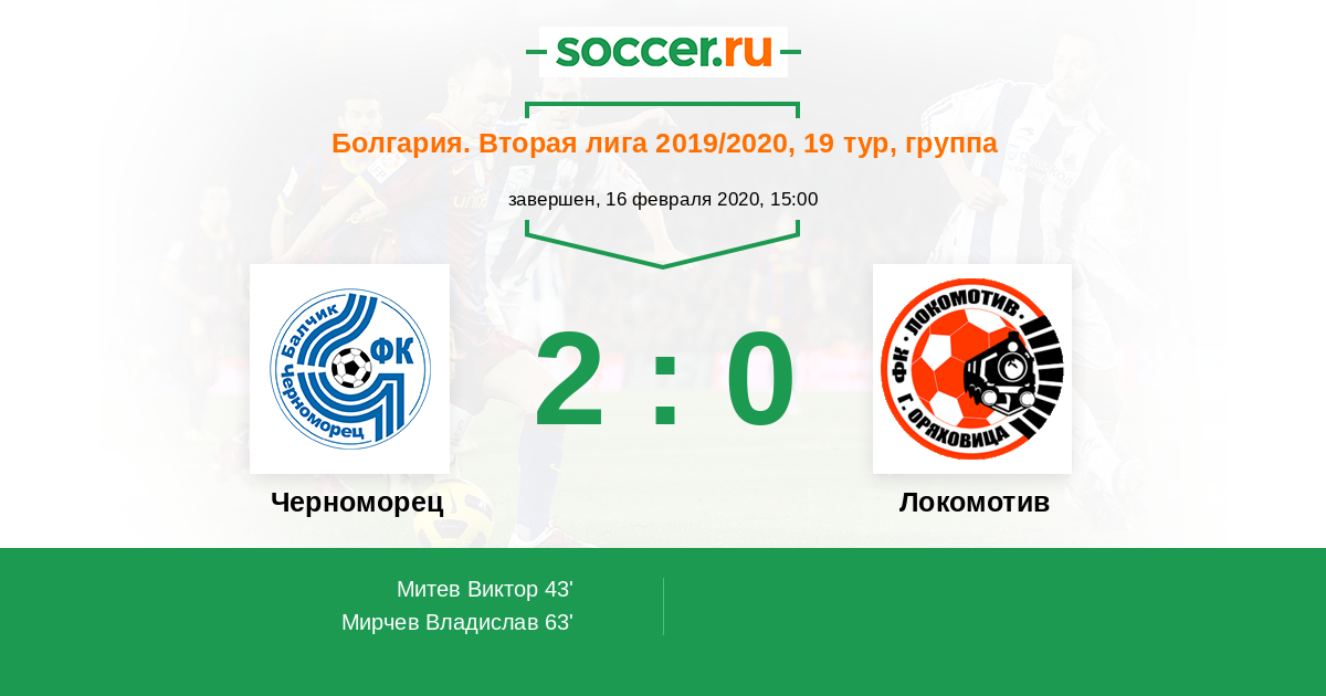 Протокол матча Черноморец против Локомотив